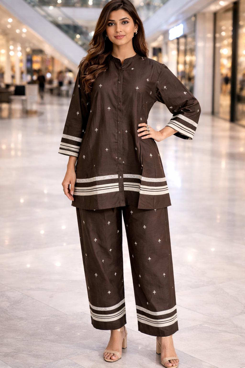 Upgrade your wardrobe with this elegant brown mul cotton co-ord set designed for style and comfort. Made from soft and breathable mul cotton fabric, this outfit is perfect for daily wear, office look, casual outings, and small occasions. The rich brown color gives a classy and trendy vibe, making it a must-have for every women’s collection. Available in different sizes for the perfect fit, this co-ord set combines fashion with all-day comfort at an affordable price of just ₹899.