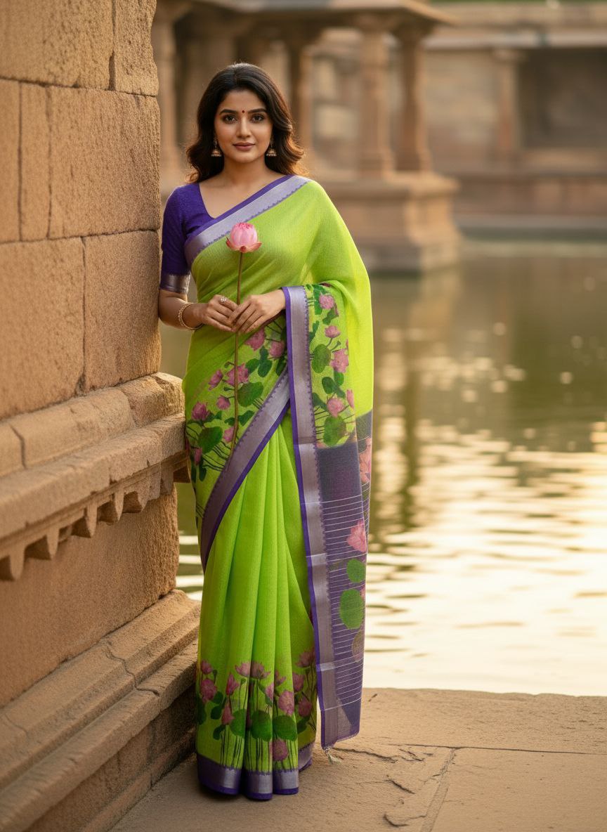 Introducing our stunning Soft Linen Saree with Digital Print, crafted for women who love comfort with elegance. The saree features: