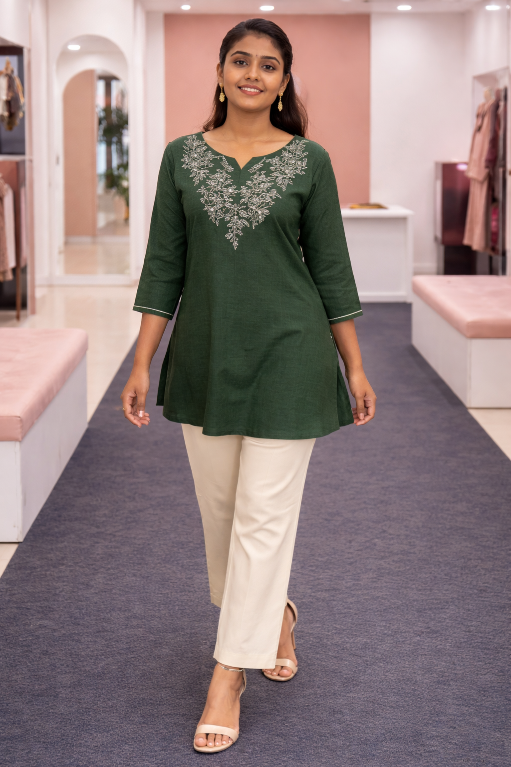 Refresh your wardrobe with this elegant green short tunic for women 💚✨