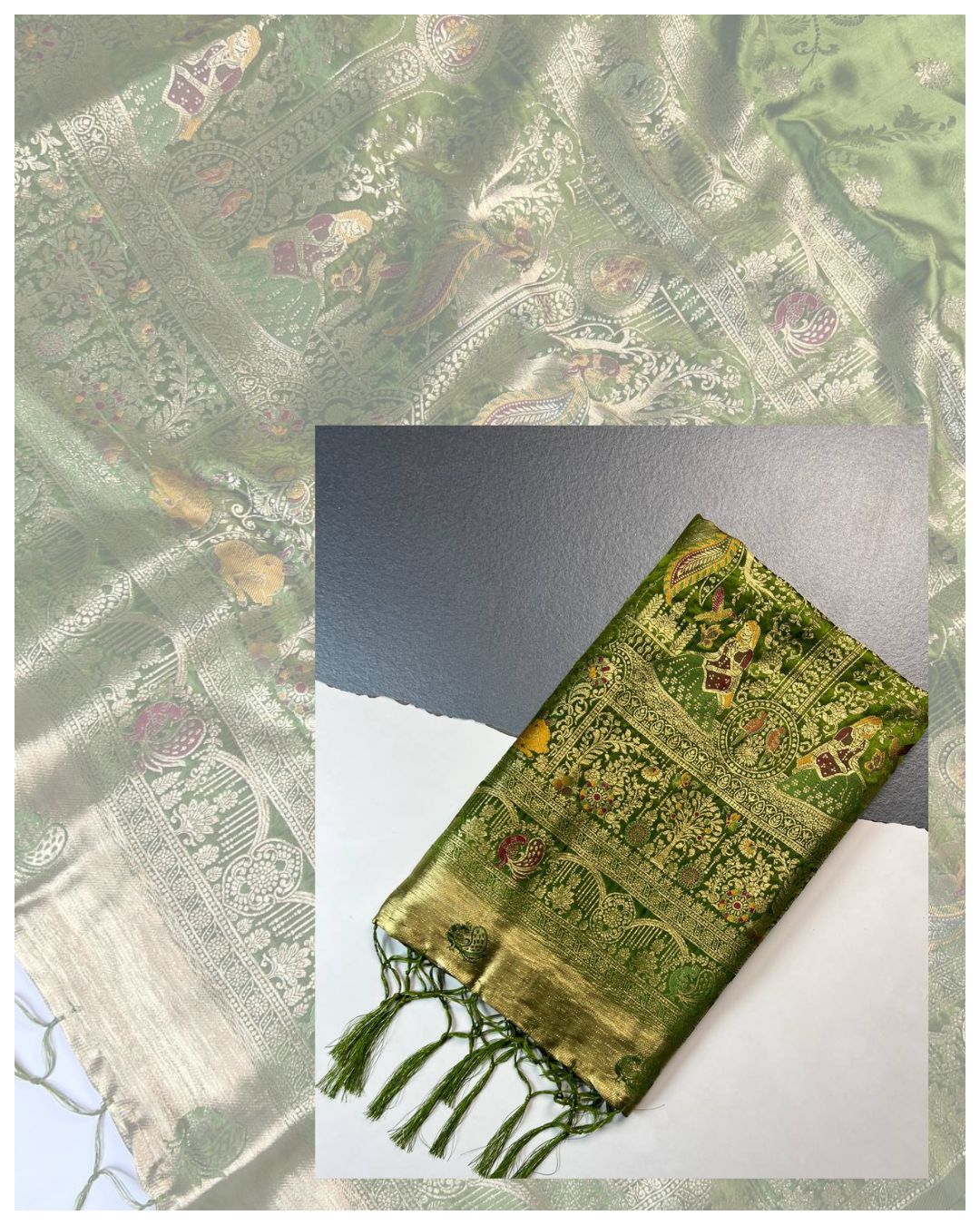 Add royal charm to your ethnic wardrobe with this New Launch Satin Mushroo Katan Banarasi Silk Saree, crafted for women who love luxury with tradition.