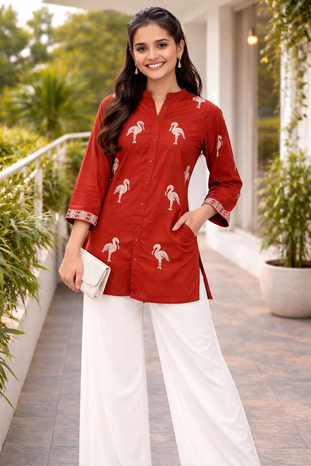 Easy to pair with jeans, plazo, straight pants, or leggings, this short kurti creates a classy effortless style.