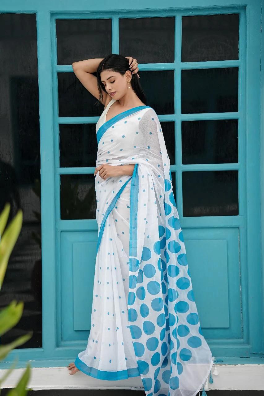 Premium Linen Saree with Digital Print & Latkan Work. 5.5M Saree & Bangalori Satin Blouse. Pay ₹100 to Reserve!