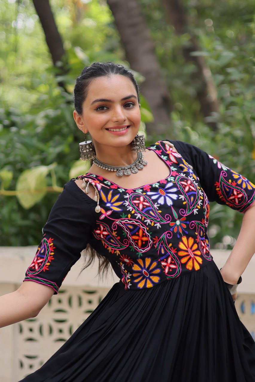 Perfect festive gown for Navratri 2025 Garba Nights & Dandiya 💃. Stylish design + comfortable fit for all body types.